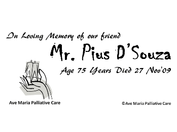 Mr. Pius D’Souza-Died 27 Nov’09 Aged 75 Years