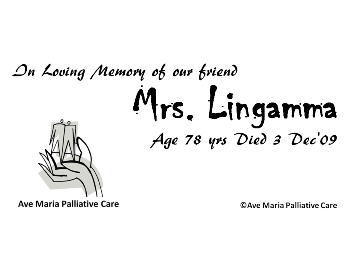 Mrs. Lingamma -Died 3 Dec’09 Aged 78 yrs