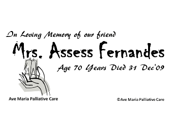 Mrs. Assess Fernandes-Died 31 Dec’09 Aged 70 Years