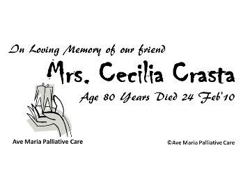 Mrs. Cecilia Crasta -Died 24 Feb’10 Aged 80 Years