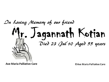 Mr. Jagannath Kotian -Died 25 Jul’10 Aged 55 Years