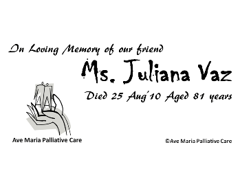 Ms. Juliana Vas-Died 25 Aug’10 Aged 81 Years