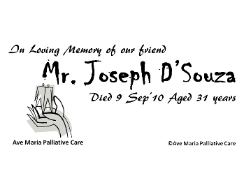 Mr. Joseph D’Souza -Died 9 Sep’10 Aged 31 years