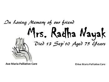 Mrs. Radha Nayak-Died 13 Sep’10 Aged 75 Years