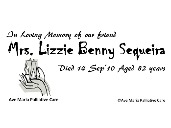 Mrs. Lizzie Benny Sequeira-Died 14 Sep’10 Aged 82 Years