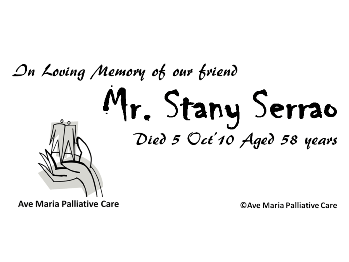 Mr. Stany Serrao -Died 5 Oct’10 Aged 58 Years