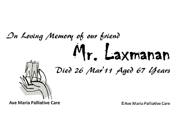 Mr. Laxmanan-Died 26 Mar’11 Aged 67 Years