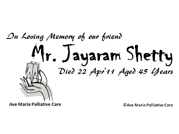 Mr. Jayaram Shetty-Died 22 Apr’11 Aged 45 Years