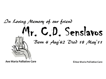 Mr. C.D. Senslavos-Born 4 Aug’42 Died 18 May’11