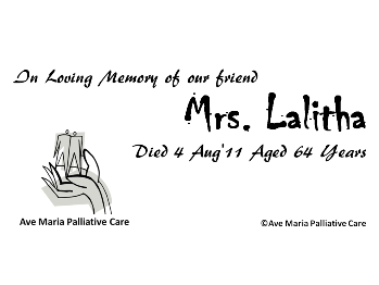 Mrs. Lalitha-Died 4 Aug’11 Aged 64 Years