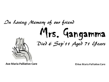 Mrs. Gangamma -Died 6 Sep’11 Aged 71 Years