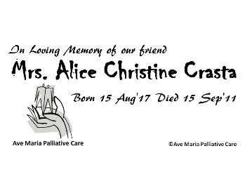Mrs. Alice Christine Crasta-Born 15 Aug’17 Died 15 Sep’11