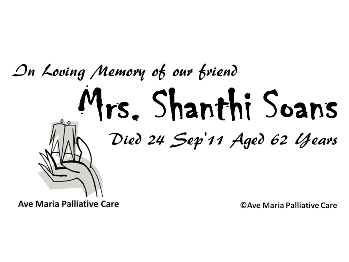 Mrs. Shanthi Soans-Died 24 Sep’11 Aged 62 Years