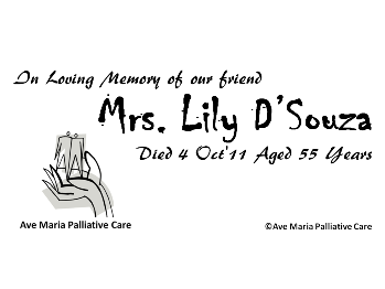 Published on October 4, 2012 at 349 × 262 in Mrs. Lily D’Souza-Died 4 Oct’11 Aged 55 Years