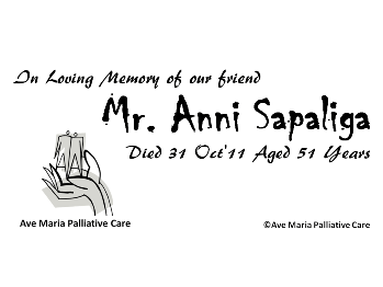 Mr. Anni Sapaliga-Died 31 Oct’11 Aged 51 Years