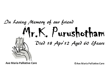 Mr.K. Purushotham-Died 18 Apr’12 Aged 60 Years