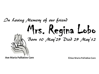 Mrs. Regina Lobo -Born 10 May’29 Died 29 May’12