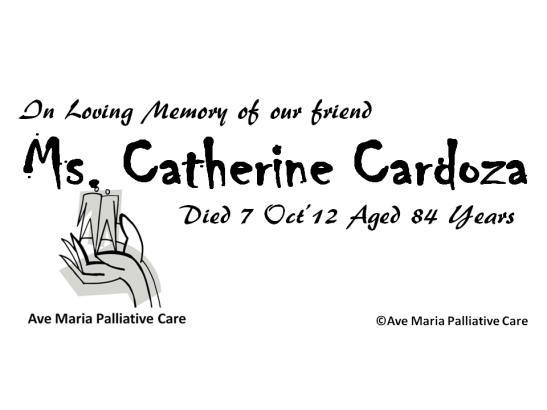 Ms. Catherine Cardoza – Died 7 Oct’12 Aged 84 Years
